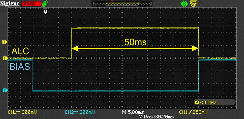 3.ALC reduces the power of the transceiver to 0W at 50mS.
