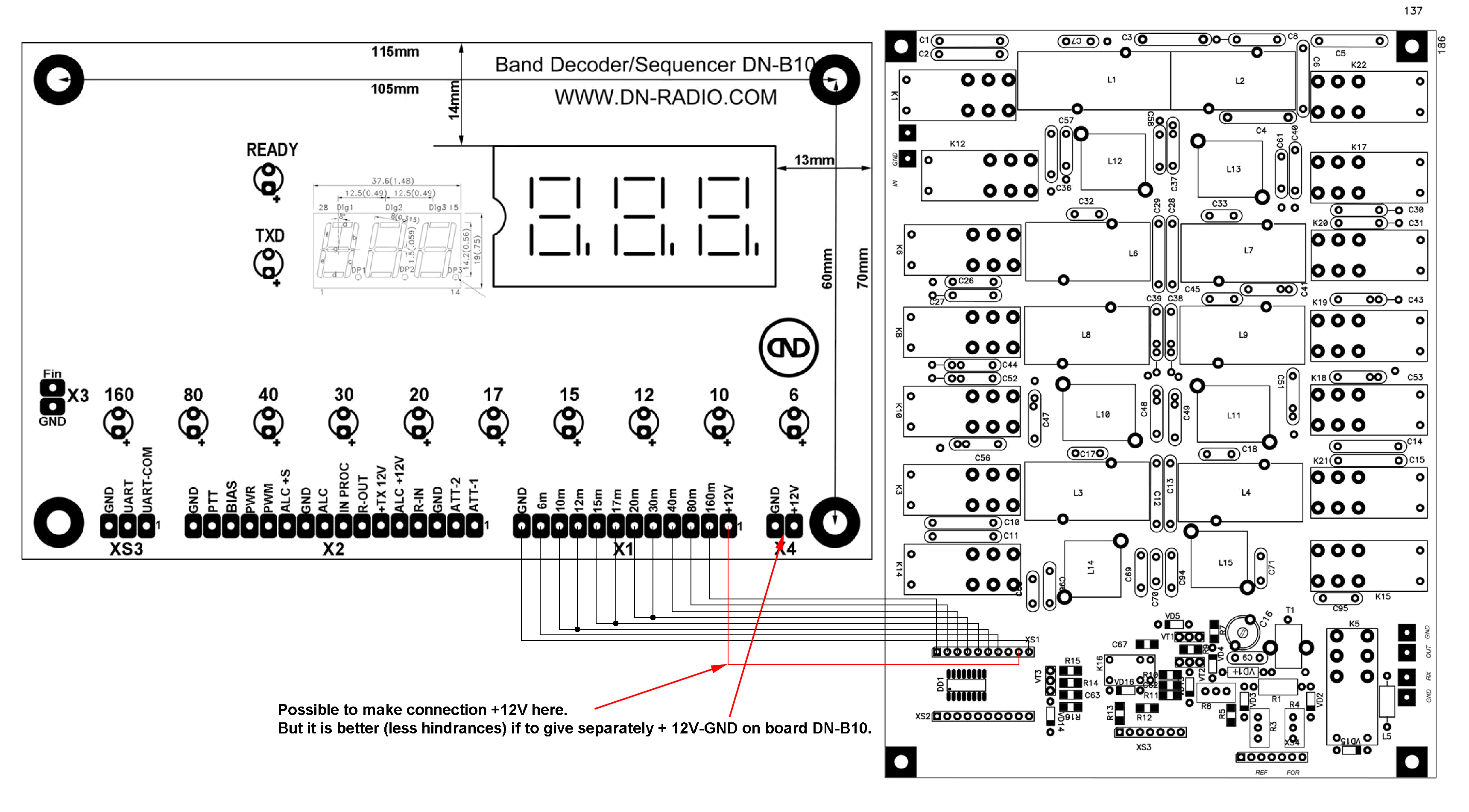 For the power of the Band Decoder/Sequencer used sufficiently stabilized voltage 5V, current up to 80mA. But for the unification of the supply voltage is applied the additional stabilizer DA1 7805. Therefore, the supply voltage may not be stable and range from +12VDC to +14VDC. The higher the voltage than the stronger will be heated 7805. Increasing the voltage will increase the power that is dissipated on DA1. Power is supplied to connector X4.