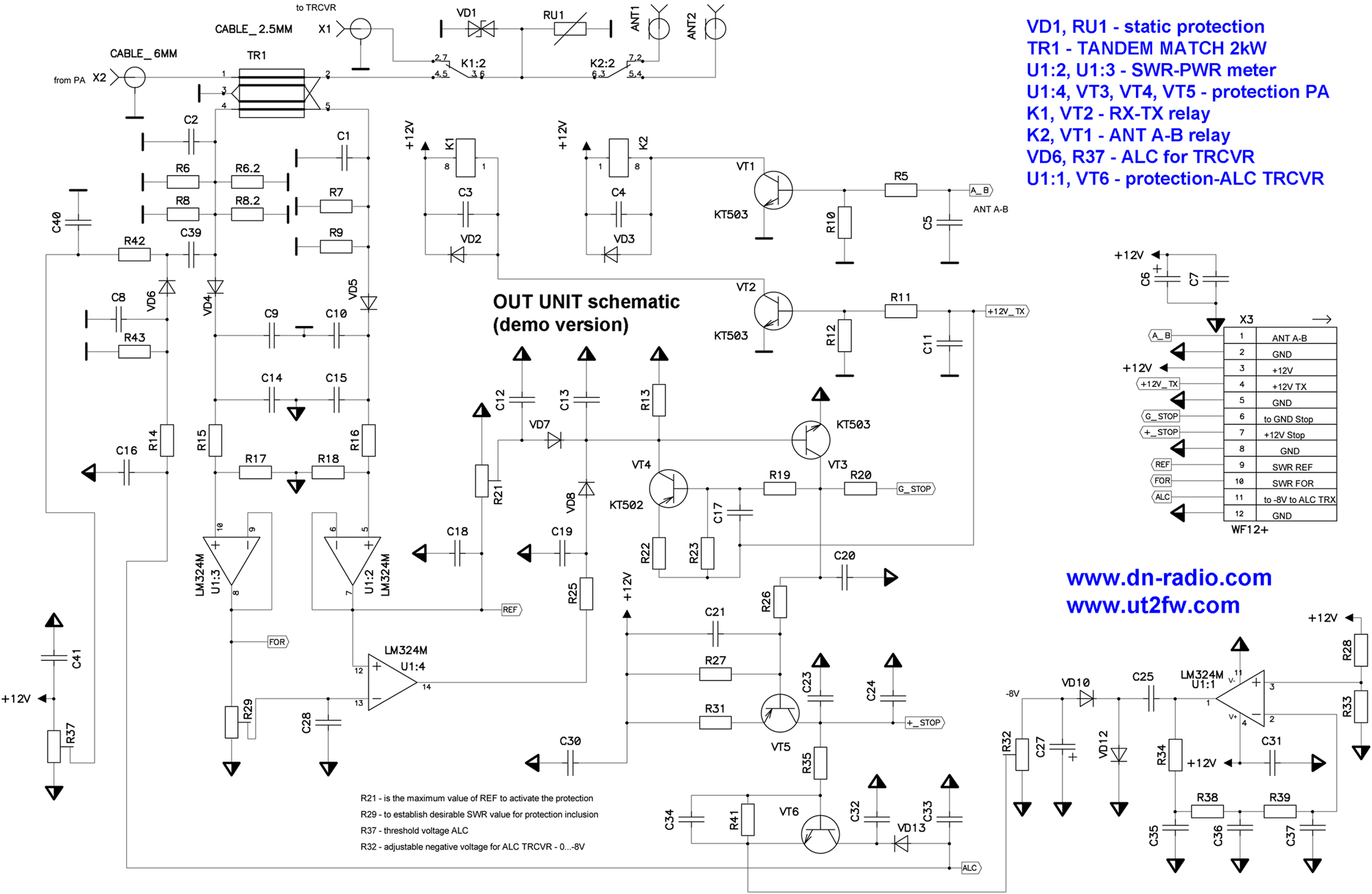 If SWR exceeds value (which you will choose as resistors R21, R29) – VT3 will open.