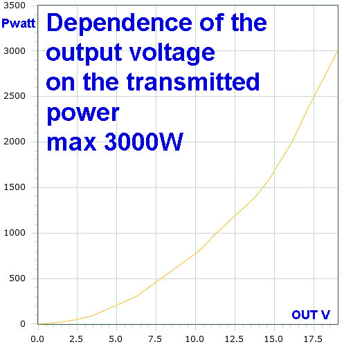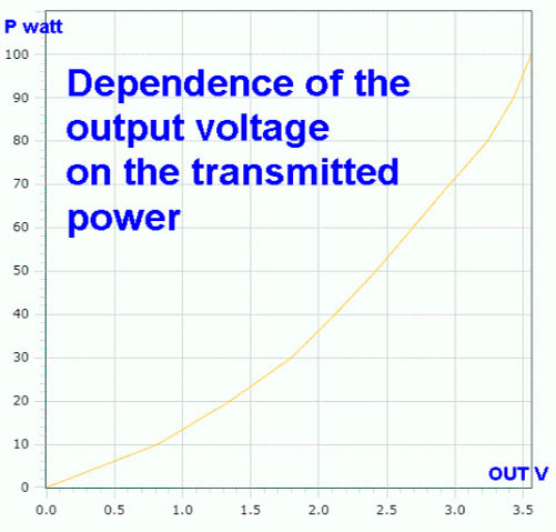 The graph shows the dependence of the output voltage on the transmitted power.